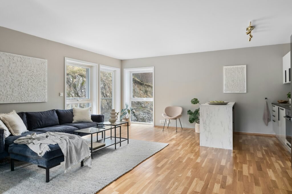 Choose one wall—usually behind the sofa or across from the entrance—and give it attention: